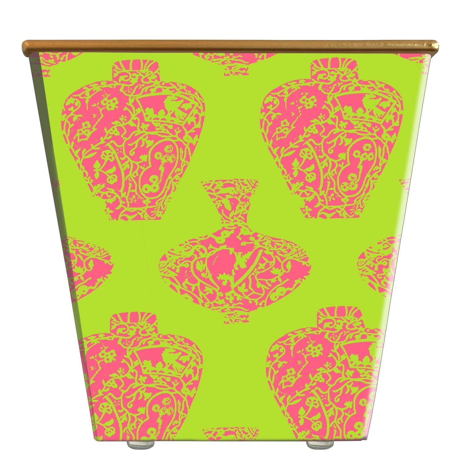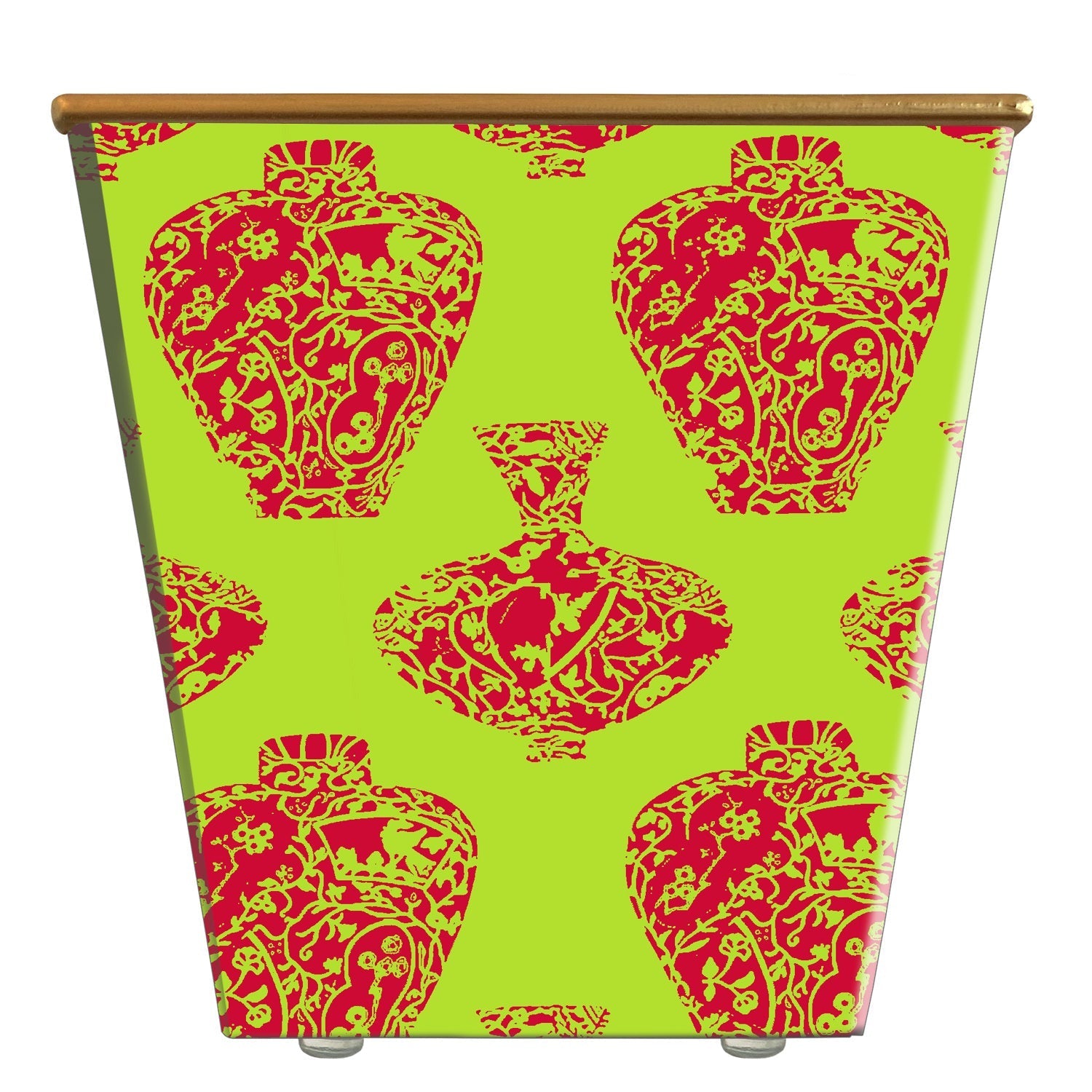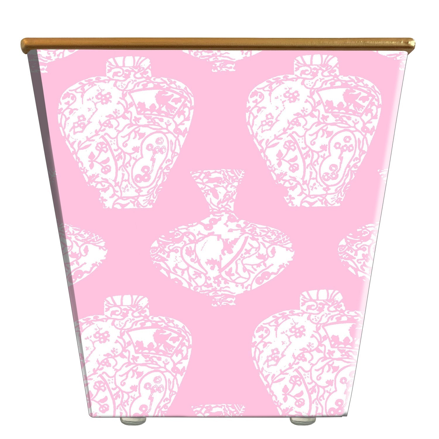 Handcrafted of composite material, wrapped in decorative paper, and finished with a burnished gold rim — four protective pads support its base. Proudly made in the USA!
