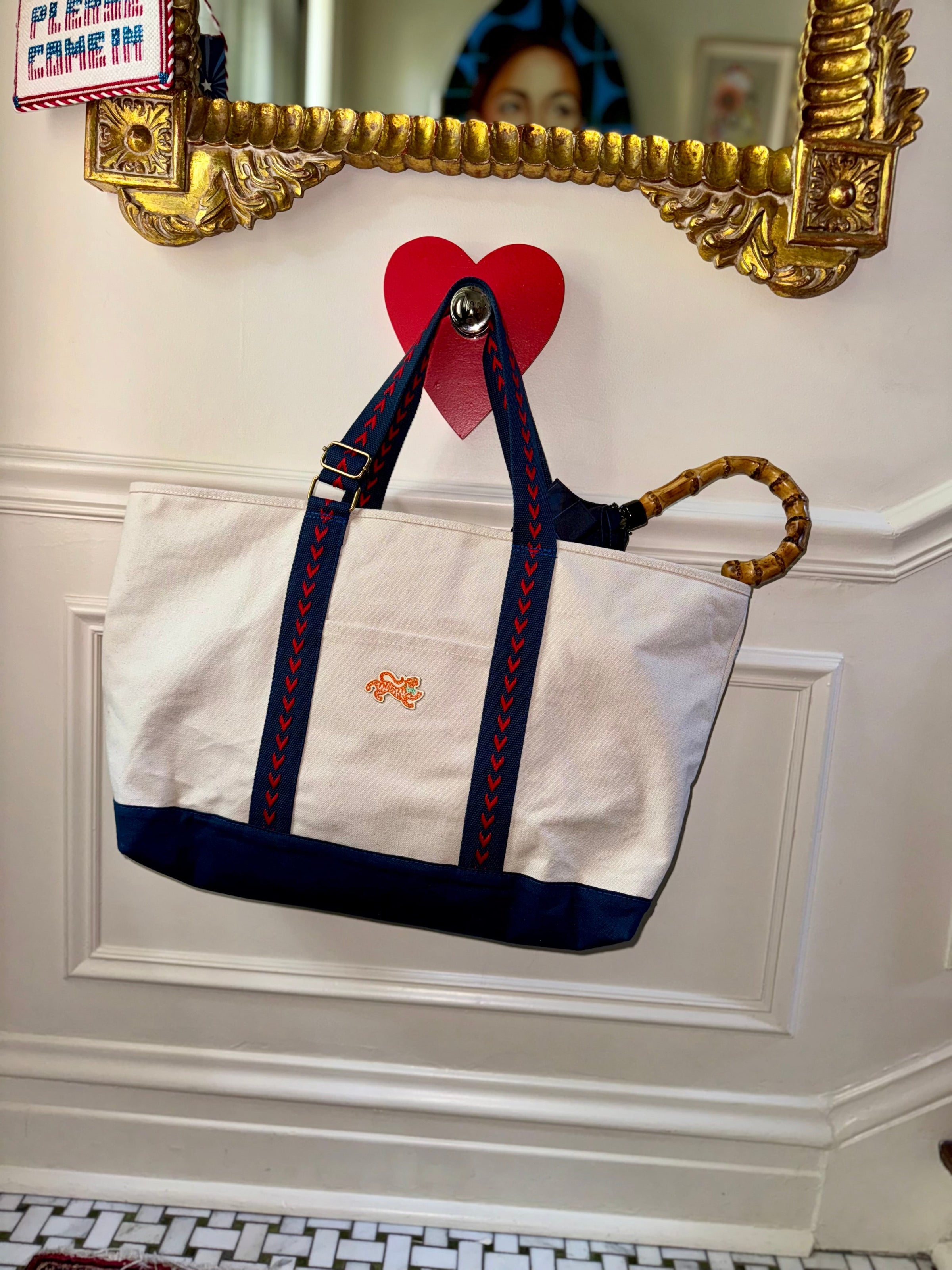Tigre de Tartán Signature Canvas Tote, NAVY ADJUSTABLE
