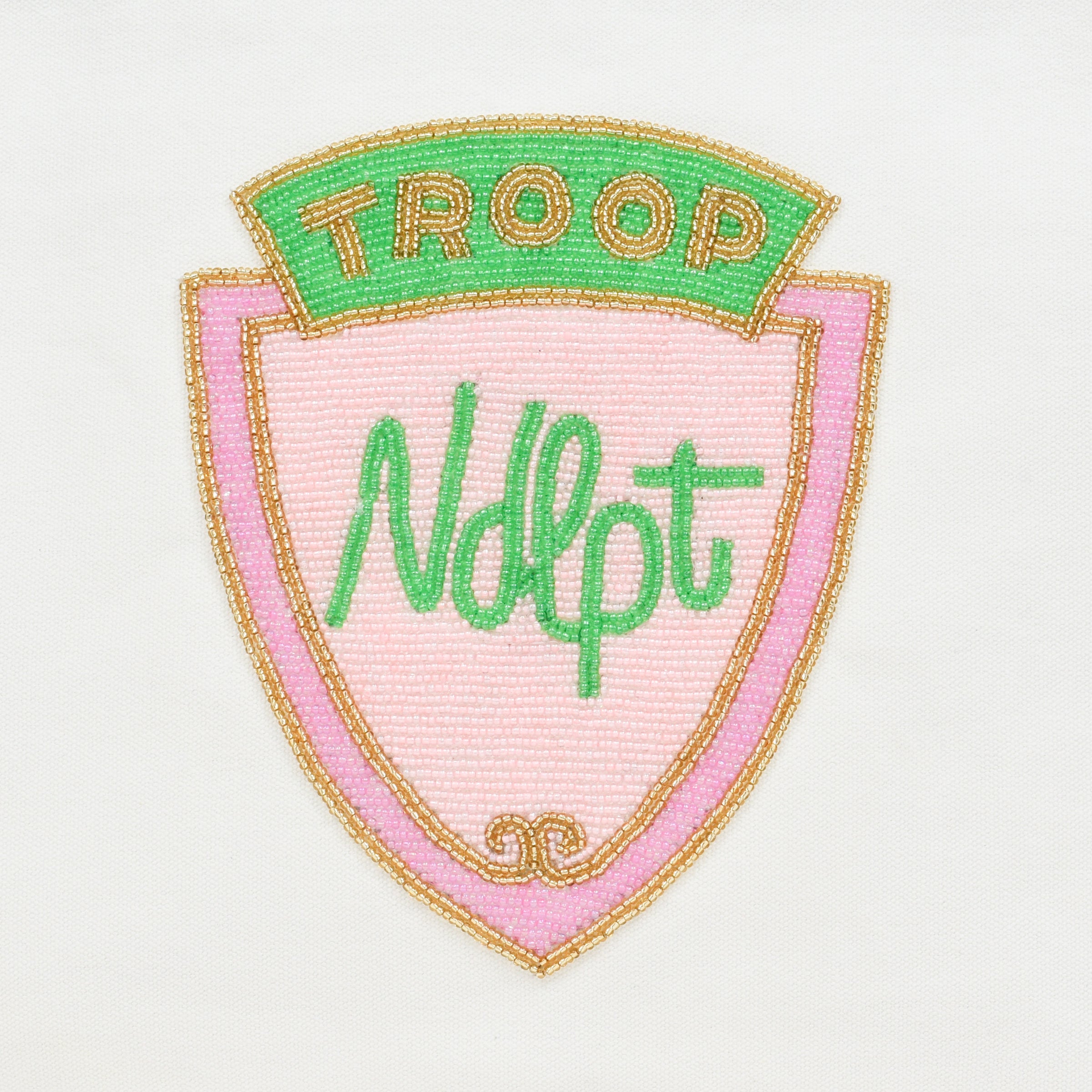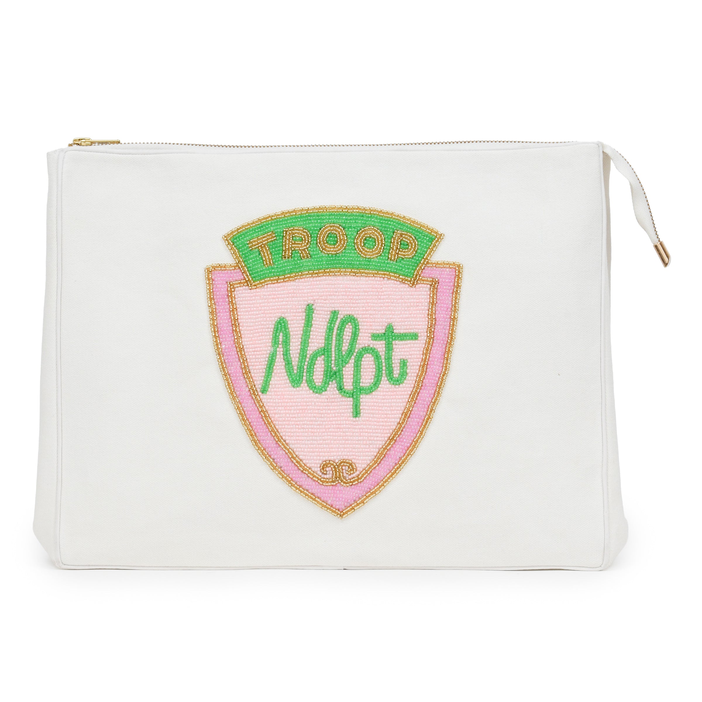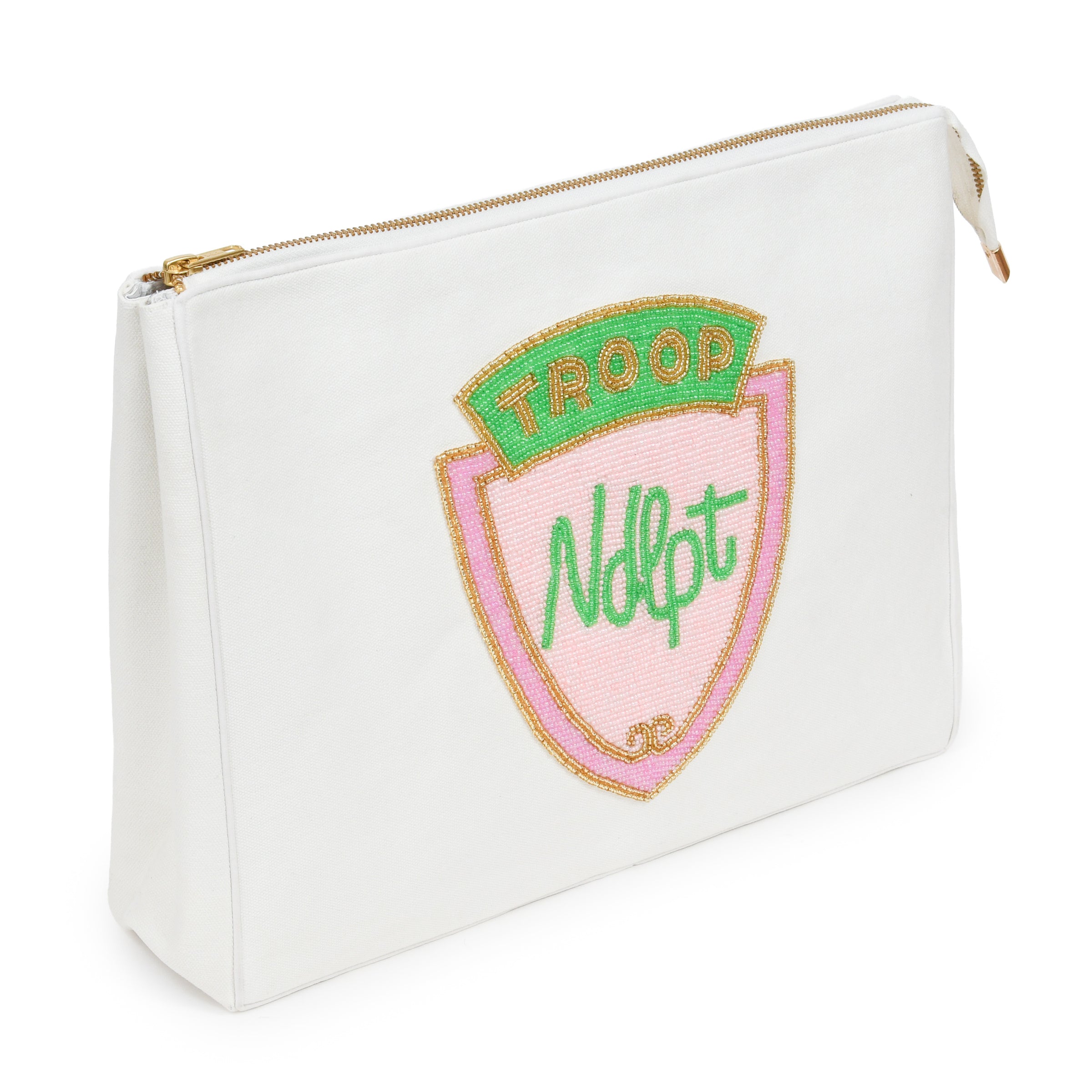 Die Canvas-Tasche mit vollständig perlenbesetzter Vorderseite ist 16″ breit, 13″ hoch und 6″ tief. Mit Satin gefüttert und mit einer kleinen offenen Innentasche. Oben offen. Wählen Sie Griffe aus Segeltuch oder Bambus.